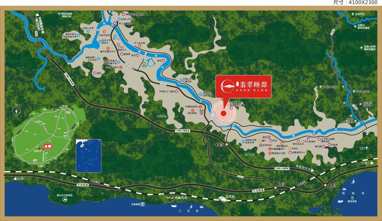 北纬18度,神奇的纬度和神奇的城市——海南省五指山市,其拥有海南第一高峰和137万亩热带雨林,年平均气温22.4度,空气中负氧离子含量高达8000至9000个/立方厘米之多。森林覆盖率达86%。素有“海南绿肺”、“翡翠山城”的美誉。辰兴翡翠颐郡坐落于五指山市南大门滨水之畔,属南水公路旅游发展带及休闲旅游度假区,通过周边路网可衔接海南环线高速,区域位置优越,是南向进入五指山市的重要门户。项目总占地面积约139亩,规划总建筑面积约13.6万平方米,是公司打造的首个集生态、康养于一体的品质项目。项目南临南圣河,北依龙脉山,群山绿水环抱、视野开阔、景观极佳。起伏的群山,灵动的流水,空气中流淌着的古老文明,得天独厚的稀缺生态资源需要你调动全部的感官去感受。项目开发努力寻求与大自然更合拍的生活节奏,缔造有利于生态、生活和生命的健康状态,成为刻板都市生活的精神花园——康养度假、栖居养生、低密高端的一方颐郡。